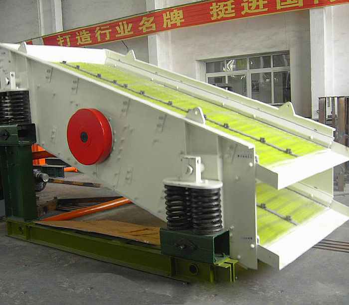 振动筛的运作过程以及组成结构 振动筛的运作过程以及组成结构 振动筛工作原理 振动筛将颗粒大小不同的碎散物料群,多次通过均匀布孔的单层或多层筛面,分成若干不同级别的过程成为筛分。大于筛孔的颗粒留在筛面上,称为该筛面的筛上物,小于筛孔的颗粒透过筛孔,称为该筛面的筛下物。实际的筛分过程是:大量粒度大小不同、粗细混杂的碎散物料进入筛面后,只有一部分颗粒与筛面接触,由于筛箱的振动,筛上物料层被松散,使大颗粒本来就存在的间隙被进一步扩大,小颗粒乘机穿过间隙,转移到下层或运输机上。由于小颗粒间隙小,大