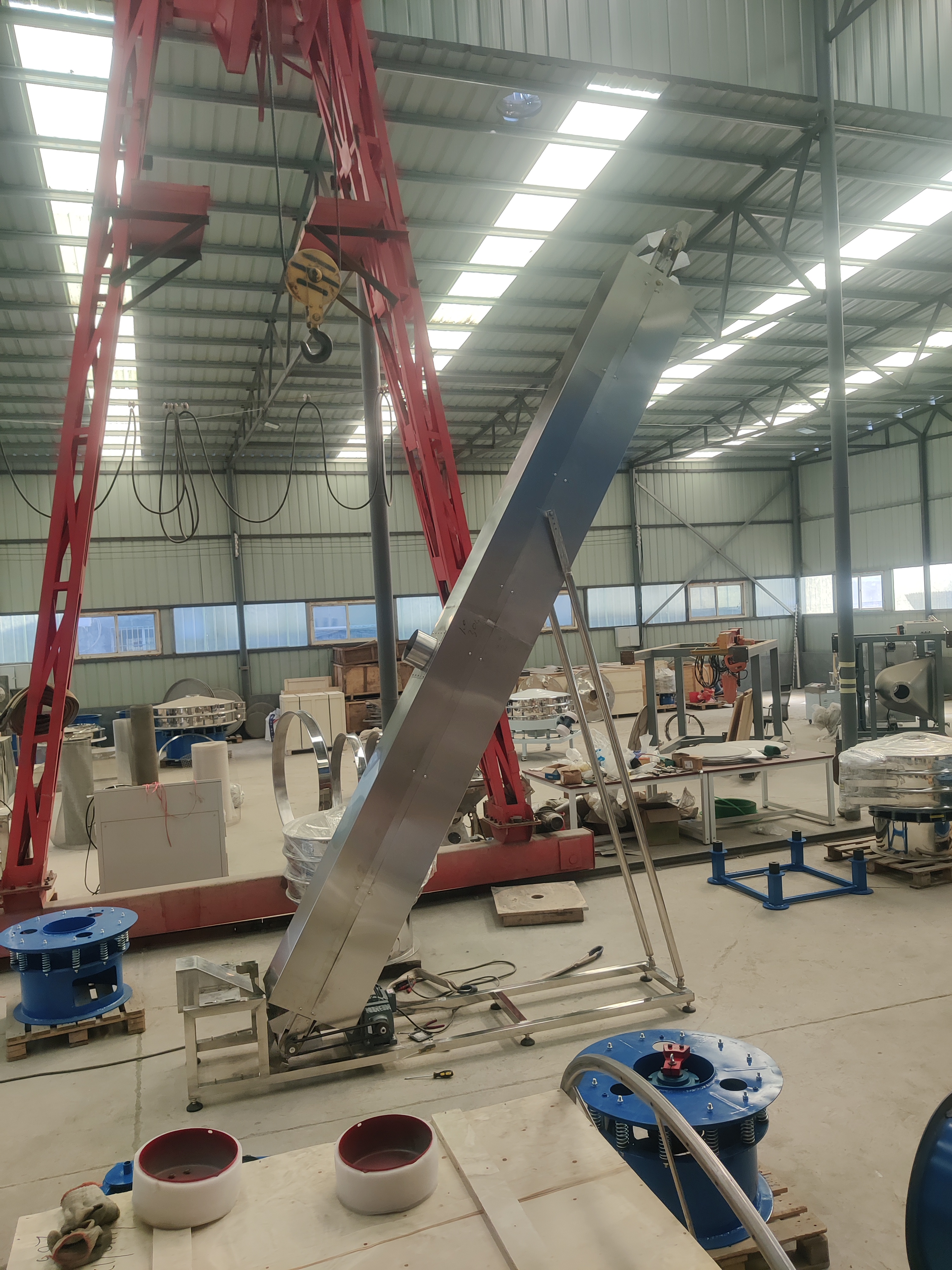 简要介绍了斗式提升机的特点和原理:一.斗式提升机的输送原理如下:料斗从下面的储存中舀起材料。当输送带或链条升到顶部时,绕过顶轮向下翻转,斗式提升机将材料倾倒到接收槽中。带传动的斗式提升机的传动带一般采用橡胶带,安装在下或上传动辊和上下转向辊上。带链传动的斗式提升机一般配备两个平行传动链,上或下有一对传动链轮,下或上有一对转向链轮。斗式提升机通常配备外壳,以防止斗式提升机中的灰尘飞扬