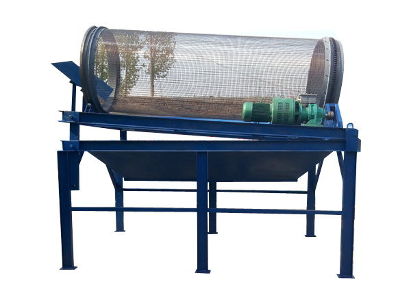 滚筒筛主要有电机、减速机、滚筒装置、机架、密封盖、进出料口组成。滚筒筛装置倾斜安装于机架上。 电动机经减速机与滚筒装置通过联轴器连接在一起,驱动滚筒装置绕其轴线转动。当物料进入滚筒装置后,由于滚筒装置的倾斜与转动,使筛面上的物料翻转与滚动,使合格物料(筛下产品)经滚筒后端底部的出料口排出,不合格的物料(筛上产品)经滚筒尾部的排料口排出。由于物料在滚筒内的翻转、滚动,使卡在筛孔中的物料可被弹出,防止筛孔堵塞 滚筒筛主要特点 筛孔不易堵塞;运行平稳,噪声较低;结构简单,维修方便;筛分筒可封闭,