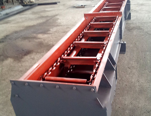 刮板粉煤灰输送机的原理是借助构件上刮板的推力作用,使钢丸跟随推理作用向前运行,从而达到输送目的。其优点在于:安装高度小、维修(Repair)方便、成本(cost)低、功率消耗(Power consumption)较少、多点加料与卸料;刮板输送机的类型较多,能够很好的满足客户需求;其缺点在于运输过程中容易被异物卡住,所以在钢丸的进入要求相对较高。并且该输送机一般长度不能超过50M,运输承重(Bearing)每小时不得超过150t。