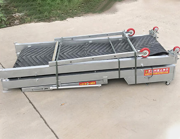 小型折叠皮带机主要由机架、输送带、托辊、支架、驱动装置等部分组成。机架由优质碳钢制作而成,承载能力强,久经耐用;输送带为工业斗提机专用提升带,多层帆线,拉力更强更耐用;上面配有防滑条;支架可以升降高度,满足不同场合使用;驱动装置采用工业用减速电机,100%全铜线,扭矩更大,更耐用。