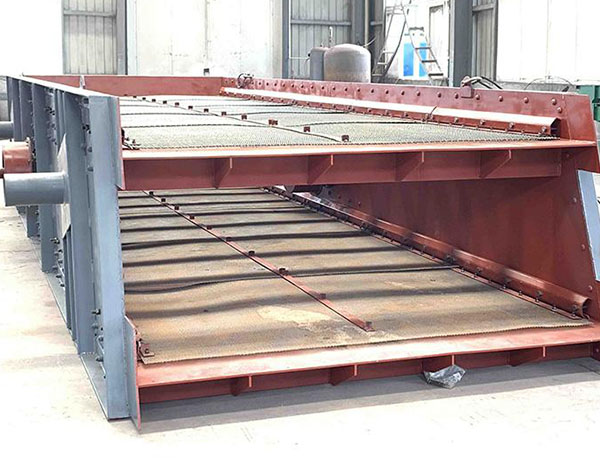 5、给料溜槽应尽可能靠近给料端,并尽可能沿筛子全宽均匀给料,其方向与筛面上物料运行方向一致,从而得到最佳的筛分效果。给料点到筛面的最大落差不大于500mm,确保物料对筛面的最小冲击;
