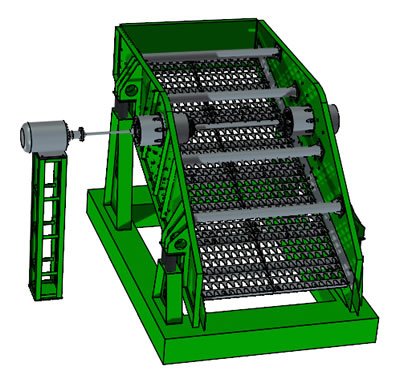 单轴振动筛有一个十分牢靠的筛箱,因为其结构是焊接及铆接而成,在振动器的主轴上不仅中间位置有偏心轴,而且主轴两头也有能够调节的偏心轮。在筛分时,电动机经由三角带作用于振动器,传动轴使偏心轴及偏心轮产生惯性力,这种惯性力会令筛箱作近似的圆形的运动,使物料得到了佳的筛分效果。